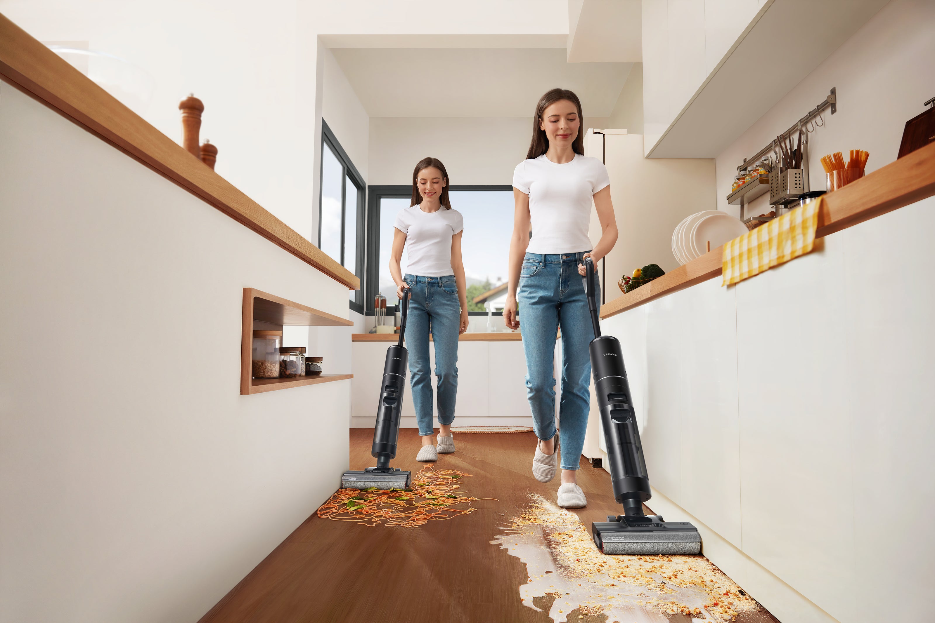 Simplify your cleaning routine with this 2-in-1 vacuum for wet and dry messes, revitalizing your floors with fresh water while keeping dirty water out with a comb-toothed scraper.
