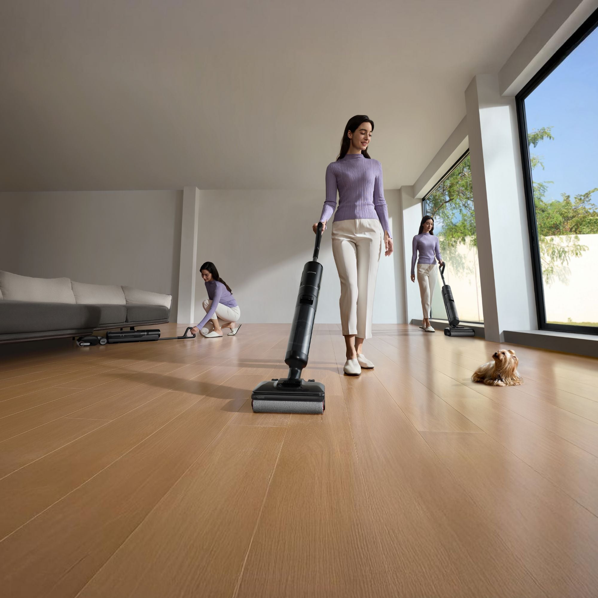 The H12 Pro FlexReach combines powerful 18,000Pa suction, dual-edge coverage, and a flexible lie-flat design to clean hard-to-reach areas with ease. Its advanced self-cleaning system features 85°C* hot wash and dual rotating brushes to prevent hair tangles and keep the unit fresh. With extended runtime, a large water tank, and intuitive controls, it delivers a truly elevated floor-cleaning experience.