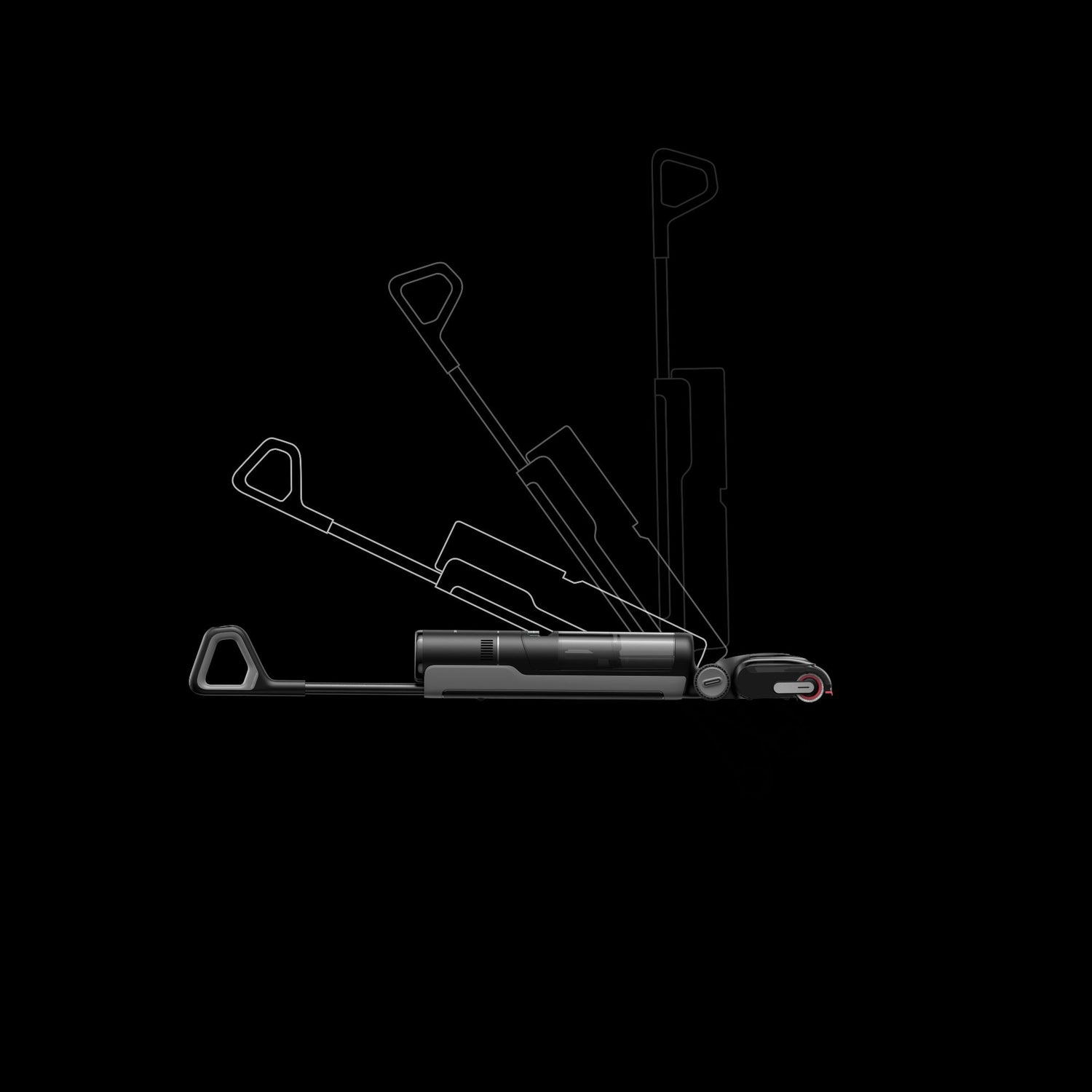 180°, 14cm, 9.6cm: The entire body of vacuum cleaner can reach spaces as low as 14cm and the brush head as low as 9.6cm.